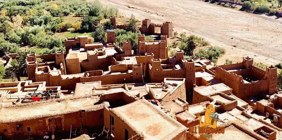 After having breakfast, we go on a city exploration of Ouarzazate. Our first stop is the Atlas Studios, a location famous for hosting the shoots of various movies. Next, we visit the Taourirt Kasbah, a historic and fortified mud castle. Afterwards, we head towards Agdz and follow the Draa Valley, the longest river in Morocco. Along the way, we take breaks to admire the palm tree groves, stunning Kasbahs, and Berber villages. We have free time for lunch either in Nkob or Alnif.