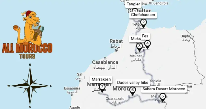 This Tangier to Marrakech desert tour is ideal for travelers who want to explore Morocco’s culture, landscapes, and Sahara Desert in just 6 days.